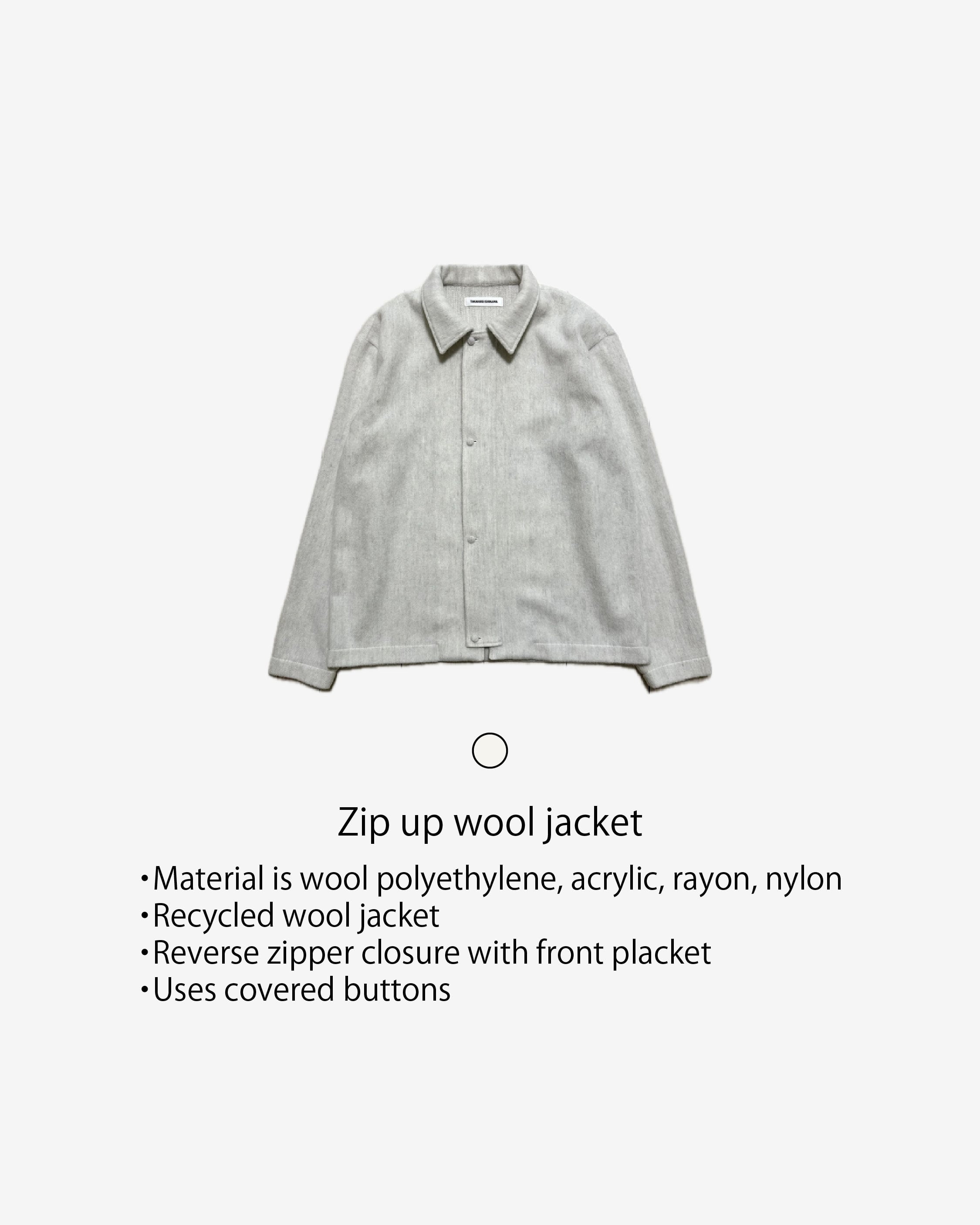 -再生ウールを使用した逆開ファスナーのジップアップタイプのジャケットです。