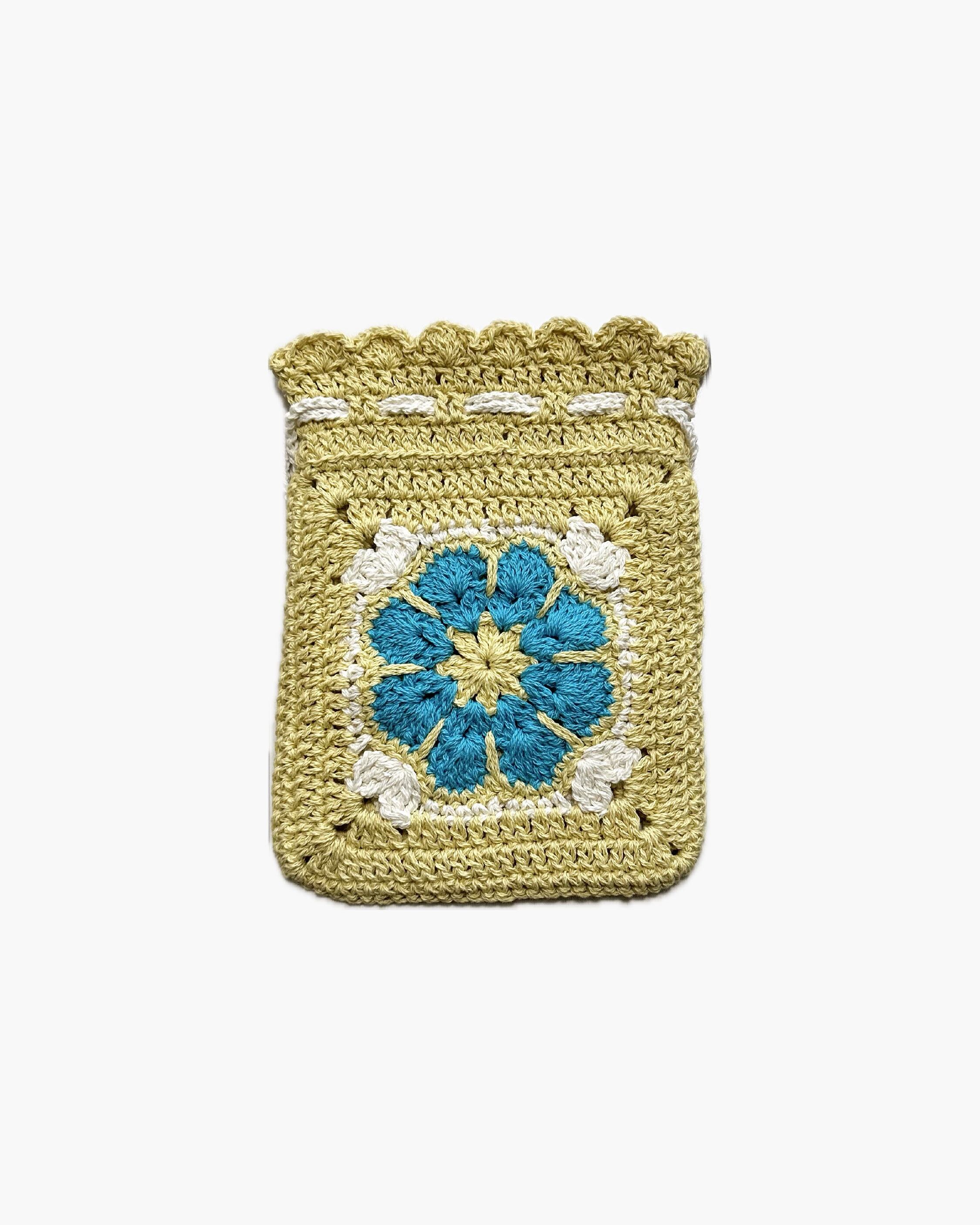 UNISEX Colour:Yellow Front fabric : 綿 100% アフリカンフラワー柄 モチーフの手編み巾着 たて 17.5cm よこ 13.5cm ※ 在庫あり|即日発送
